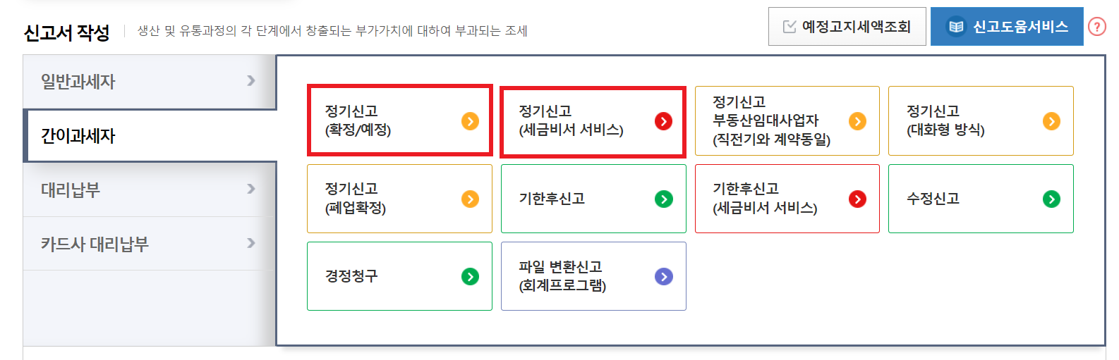 ✔ 정기신고(세금비서 서비스) : 법정신고 기한 내에 확정 신고하는 경우